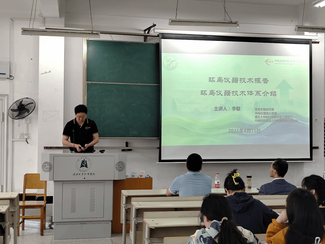 2025年4月11日,70net永乐高在四教307报告厅举办"环岛仪器技术报告及技术体系介绍"专题报告会。环岛生物科技有限公司总经理李敏担任主讲,院长盛希群、副院长钟星、辅导员郑丽凡及生物技术专业2022级、2023级全体学生共同参与。会议由檀星老师主持。