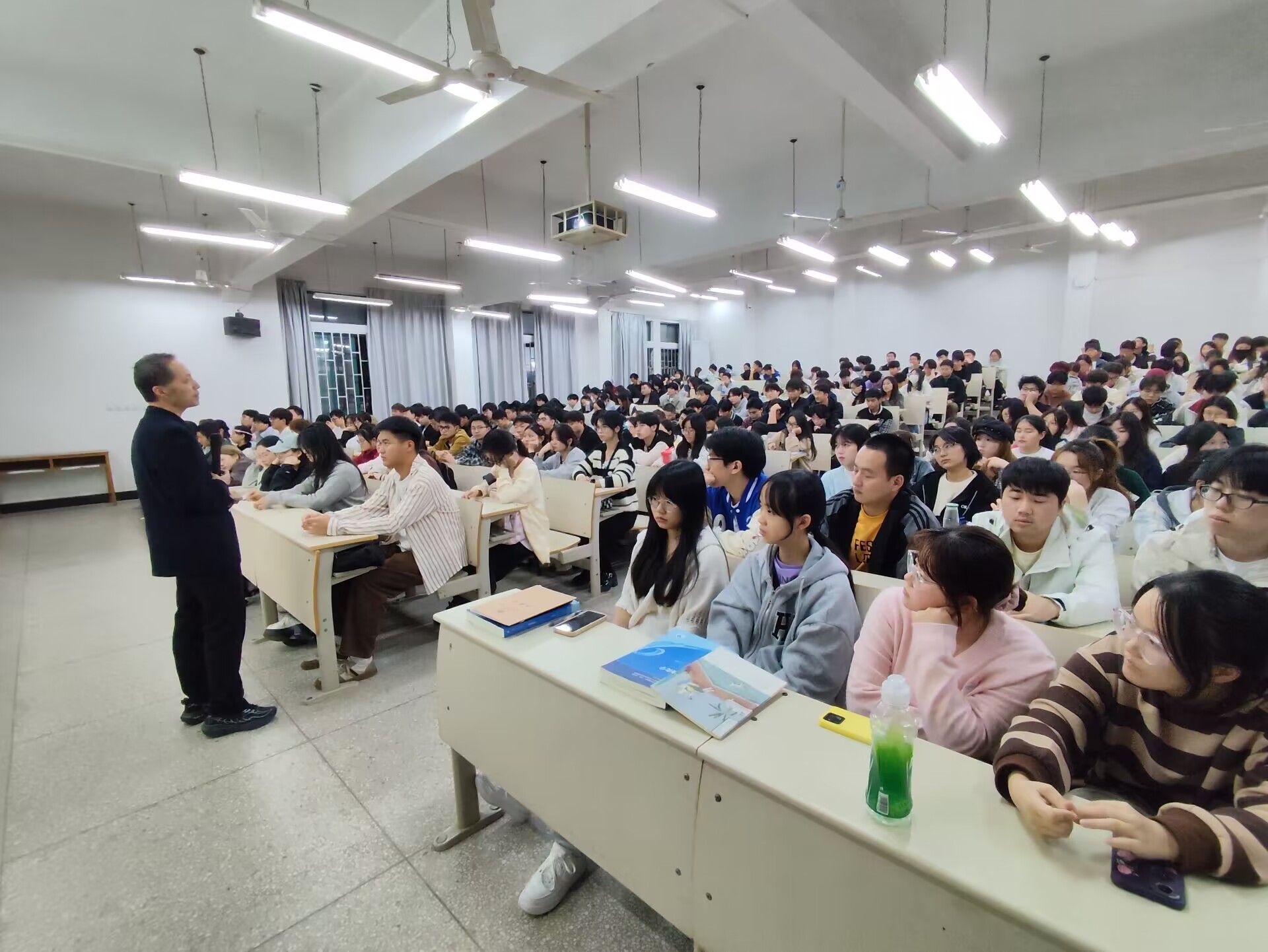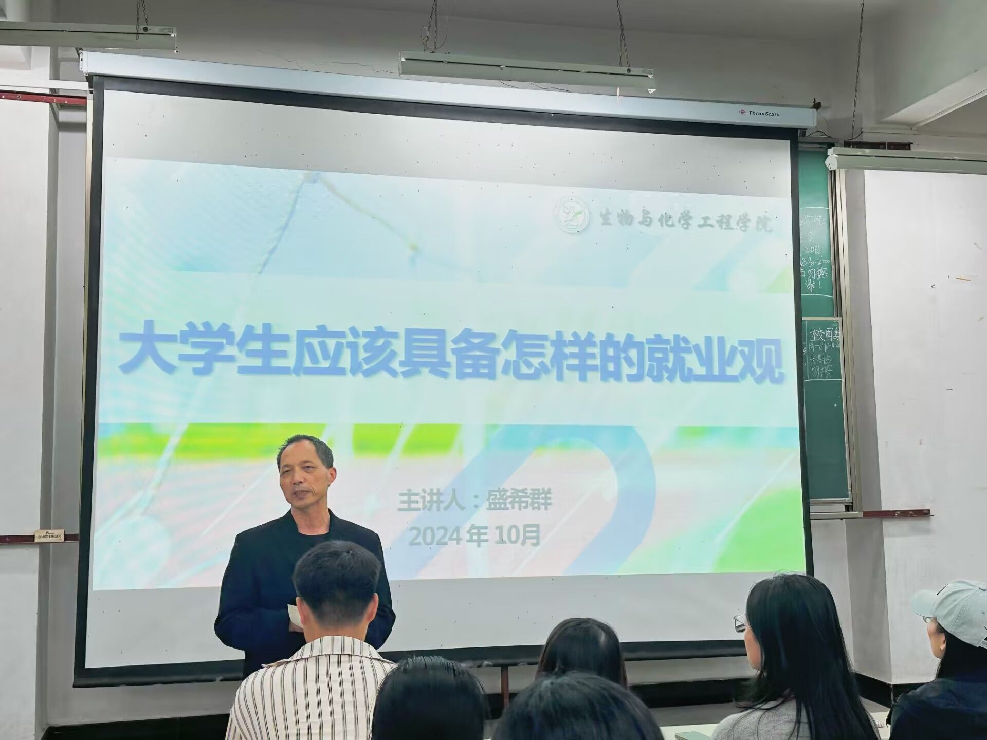 2024年10月25日晚,70net永乐高在四教108举行以“大学生应该树立怎样的就业观”为主题的专题讲座。本次讲座由学院院长盛希群主讲,全体辅导员及22级全体学生参加,旨在帮助即将步入社会的大三学生树立正确的就业观念,明确职业发展方向。