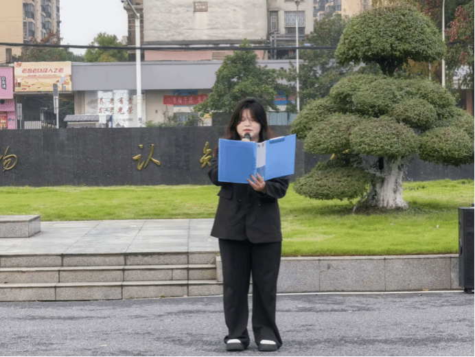 升旗礼毕,学院学生代表应化2301班的罗贝同学在国旗下发表了题为《忆烽火岁月敬先烈 强国筑梦我担当》的演讲。罗贝同学带领同学们缅怀革命先烈,从历史的深处汲取磅礴力量,引导广大同学铭记抗战历史、厚植爱国情怀、明确强国使命。